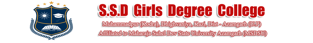 Education is not a personal possession it is given to the one for the sake of many. S.S.D Girls Degree College has been founded by Muhammadpur (Kodra), Dist - Azamgarh The Academy is a private no-grant organization and is working on the principle of self financing. S.S.D Girls Degree College is set in a well–planed campus, aesthetic building with well furnished Class-rooms, Science Labs, Library, Lecture Halls, Outdoor - Indoor Games & sports facilities, offer an ideal environment for Pursuit of professional career!